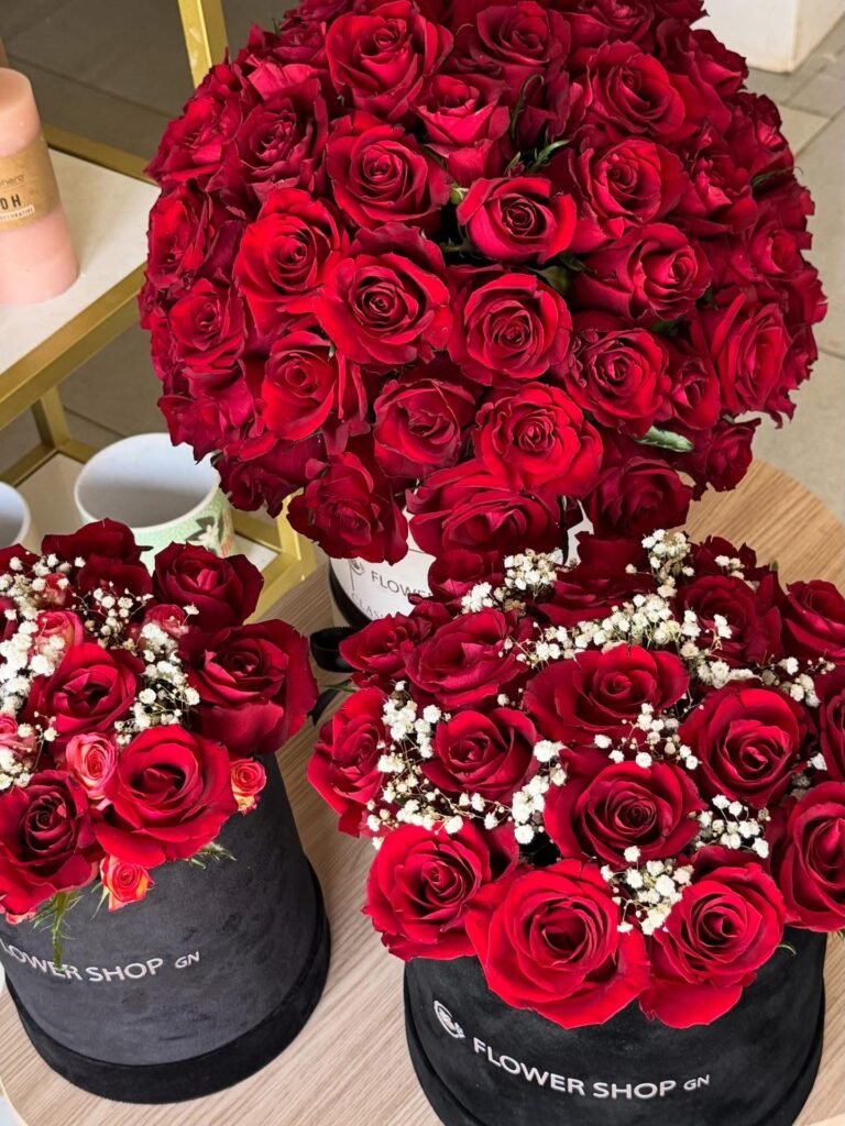 Chaque composition est préparée avec délicatesse puis remise ou livrée avec soin, dans le respect de l’expérience Flower Shop GN.